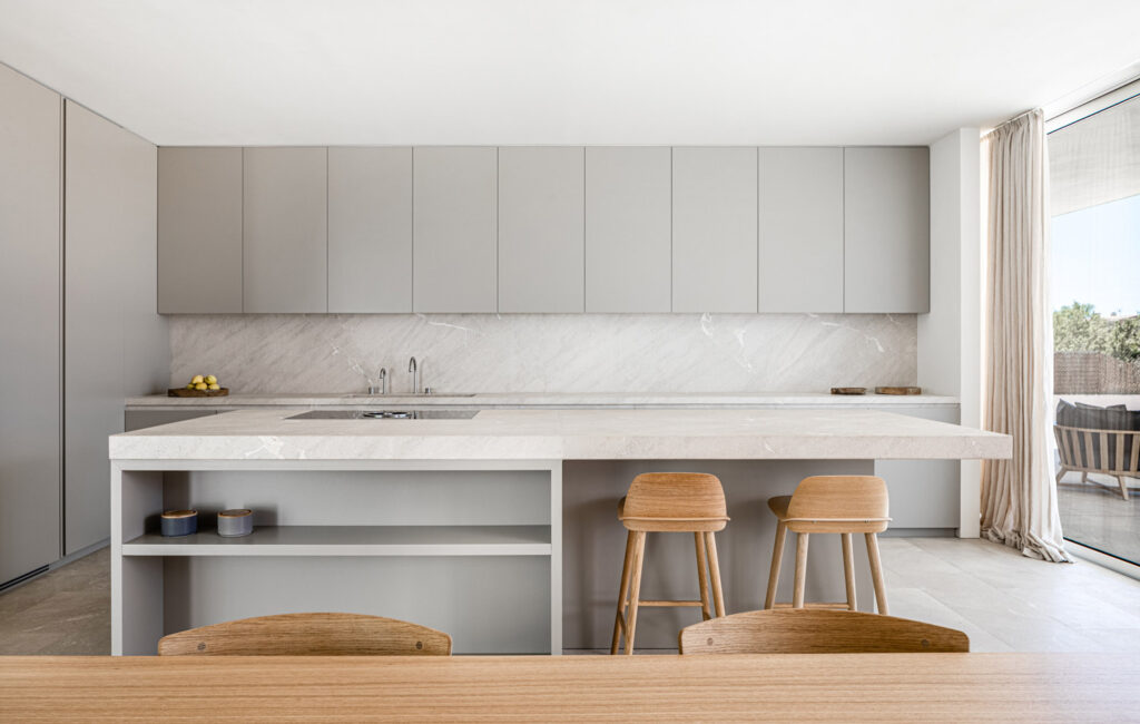 Mármoles Sorell realiza en este proyecto de encimeras tanto interiores como exteriores en Mármol Volakas y Zarci.